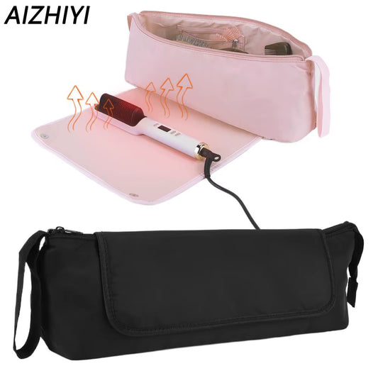 2 in 1 Hair Tools Travel Bag with Heat Resistant Mat Travel Hair Makeup Bag for Curling Iron Hair Straightener Flat Iron Pouch